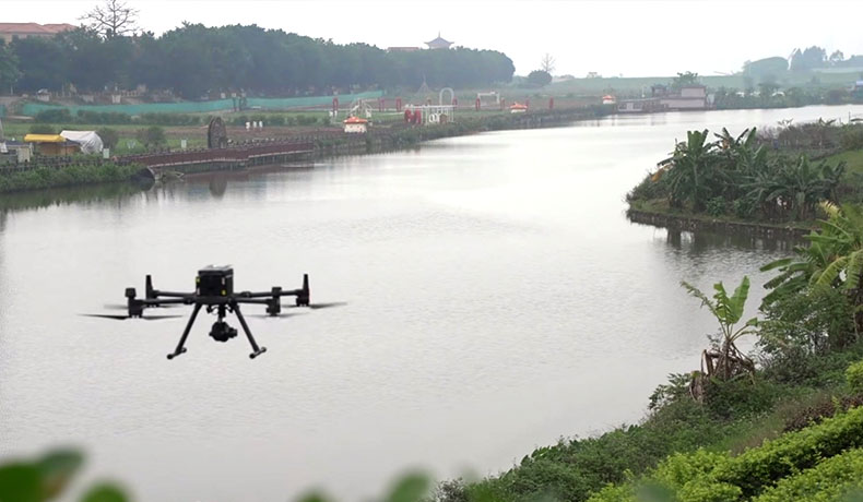 搭載紅外攝像頭的無人機可以實現多角度、多維度的巡查和數據采集,更客觀、全面、及時地記錄河涌岸線動態變化,監測畫面通過5G信號快速穩定地實時同步在監控屏幕上,賦能智慧智水,實現河湖數字化管理。